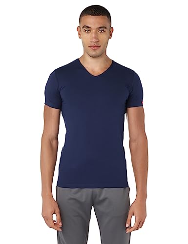 Cottonil - قطونيل فانلة داخلية للرجال باكمام قصيرة ورقبة على شكل حرف V، لون ازرق داكن مقاس M - مقاس M (عبوة من 6 قطع)