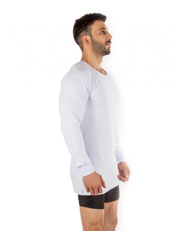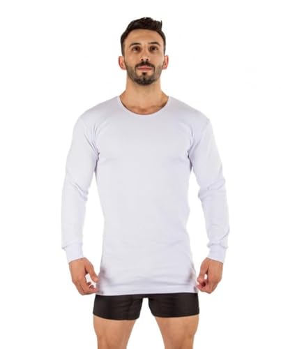 Cottonil - فانلة داخلية للرجال بأكمام طويلة من القطن الممشط 100% قطونيل، لون أبيض