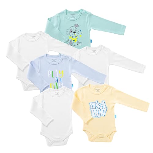 Cottonil - سالوبيت بكباسين من القطن بأكمام طويلة للأطفال البيبي من قطونيل، عبوة من 6 قطع