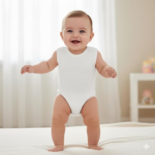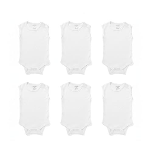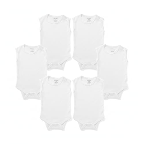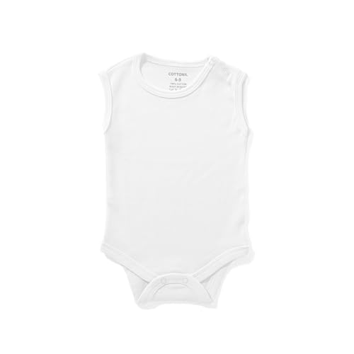 Cottonil - قطونيل سالوبيت بكباسين للاطفال من الجنسين، قطعة واحدة من القطن الابيض بدون اكمام، طقم فانلة اساسية من 6 قطع
