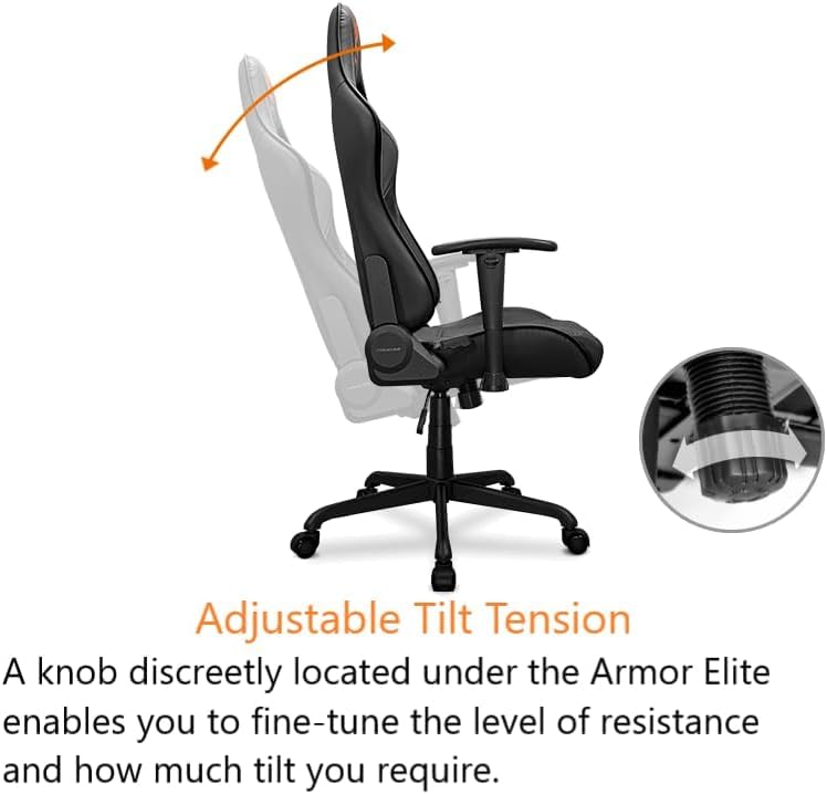 Elmotahida - كرسي من كوجر لألعاب الفيديو والعمل المكتبي، يتميز باستلقاء بزاوية 160 درجة ومساند يد قابلة للتعديل ووسادة رأس ودعم قطني، مصنوع من المعدن، باللون الأسود