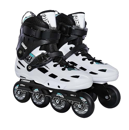 COUGAR - حذاء تزحلق بعجلات موديل 509 للبالغين قابل للتعديل مع 4 عجلات مضيئة من البولي يوريثين، عجلات دوارة للأماكن المفتوحة والمغلقة للأولاد والبنات والمبتدئين، اللون: أبيض؛ المقاس: 41