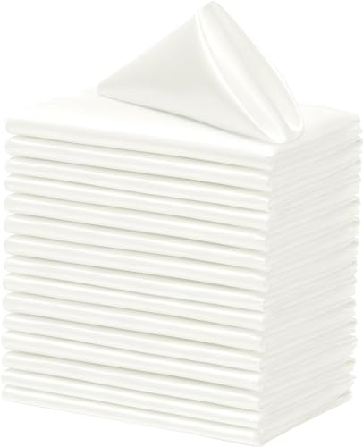 - محتويات العبوة: 24 × مناديل قماشية من الساتان بلون اوف وايت، مقاس كل منها 17 × 17 انش/ 43 × 43 سم، مناديل تشبه الحرير ولون سادة مناسبة للعديد من المناسبات، كمية كافية للاستخدام اليومي المنزلي أو الولائم.