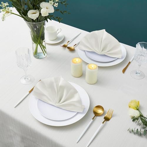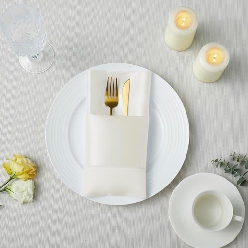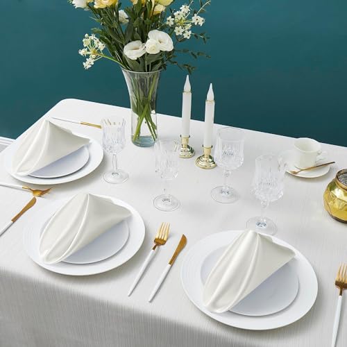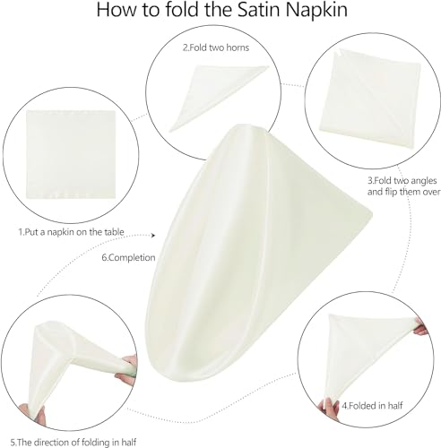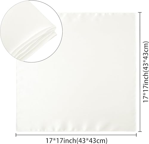 Counfeisly - مناديل عشاء مربعة من الساتان من كونفيسلي، مقاس 17 × 17 انش، مناديل طاولة ناعمة وحريرية لتزيين المطاعم وحفلات الزفاف والولائم، لون اوف وايت