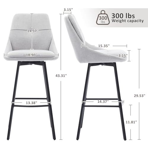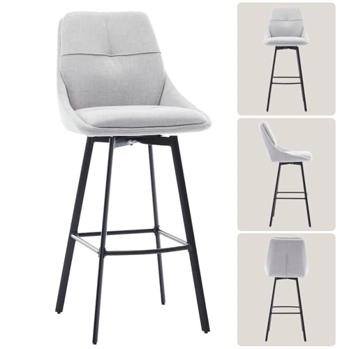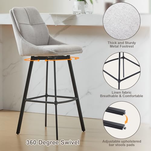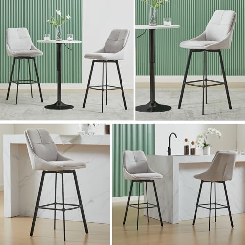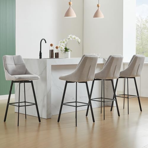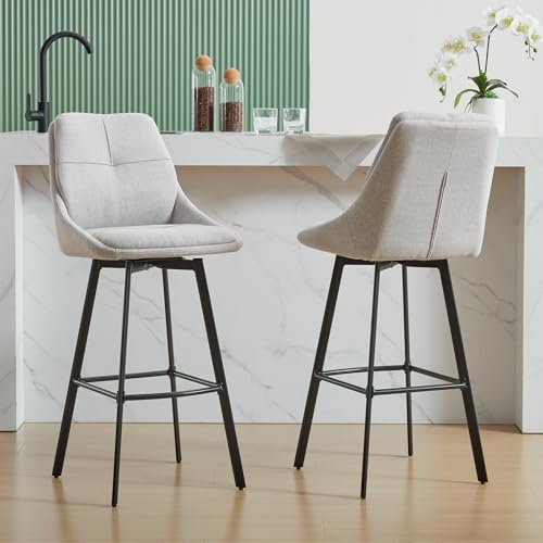 MINPINSER - طقم كراسي بار دوارة بارتفاع مناسب للمطبخ، وتصميم عصري مربع الشكل ومسند ظهر من الكتان، وسادة عريضة وأرجل معدنية، كرسي بار صناعي وأثاث للمنزل والمقهى والمطعم، 66 سم، بيج، قطعتان