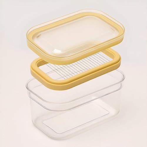 Generic - علبة حفظ الزبدة لسطح الطاولة مزودة بقطاعة لسهولة التقطيع والتخزين الآمن في الثلاجة