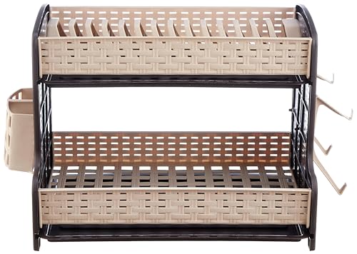 Generic - منظم لسطح الطاولة - مصفاة اطباق من الراتان مع فتحات متعددة، لمسة نهائية أنيقة باللونين البيج والبني، مثالية لتجفيف الاطباق والاواني، متينة وسهلة التنظيف