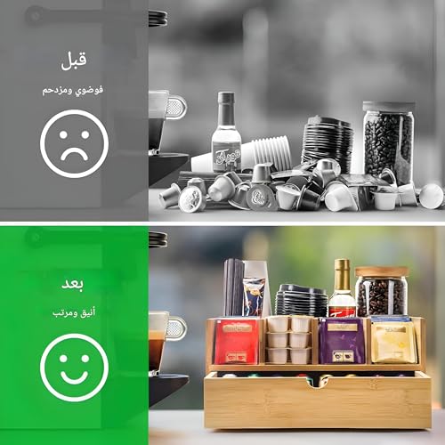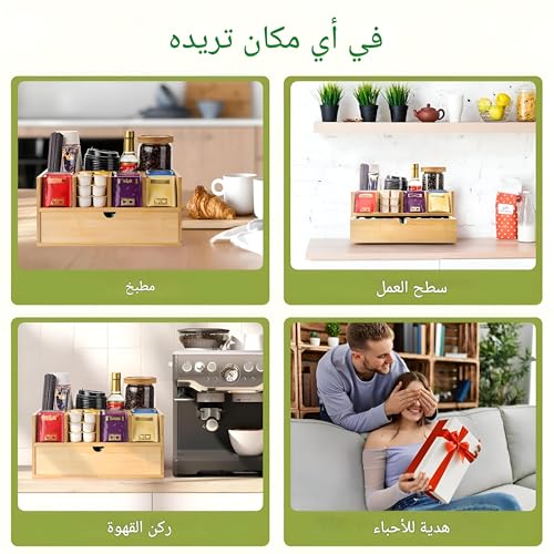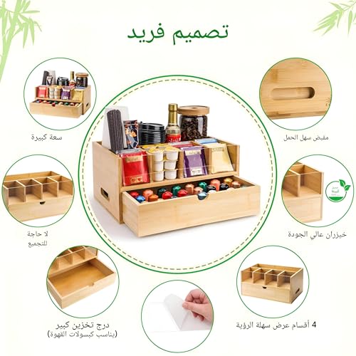 Generic - منظم محطة سطح الطاولة - تخزين القهوة والشاي متعدد الاقسام مع درج، مثالي للحفاظ على مستلزمات المشروبات الخاصة بك أنيقة وسهلة الوصول