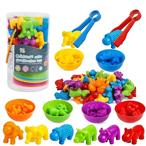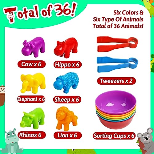 - ألعاب مطابقة لعد الحيوانات: توفر ألعاب العد هذه طريقة ممتعة وتفاعلية للأطفال لتعلم وممارسة العد، مما يساعد كريلدرين على تطوير مهارات الرياضيات الأساسية منذ سن مبكرة. يحتوي المنتج على 36 حيوان بري وأسد وفيل وأغنام وفرس النهر والبقرة ووحيد القرن و6 أوعية فرز وملاقطين كبيرين