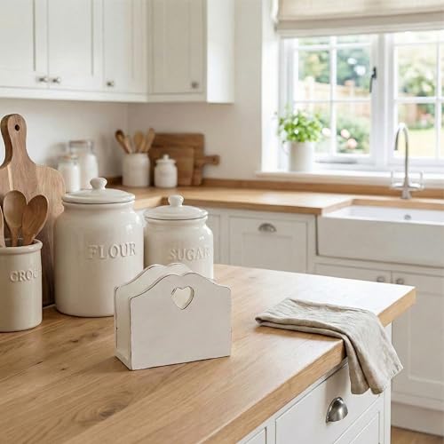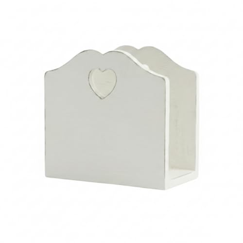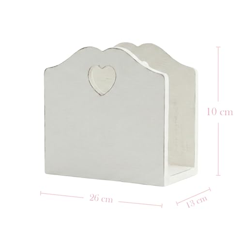 Country charm - غطاء علبة مناديل بفتحات على شكل قلب - حامل مناديل خشبي صلب بنمط ريفي - غطاء علبة مناديل مزخرف بلون ابيض عتيق لغرفة المعيشة وغرفة النوم والحمام (26 × 13 × 10 سم)
