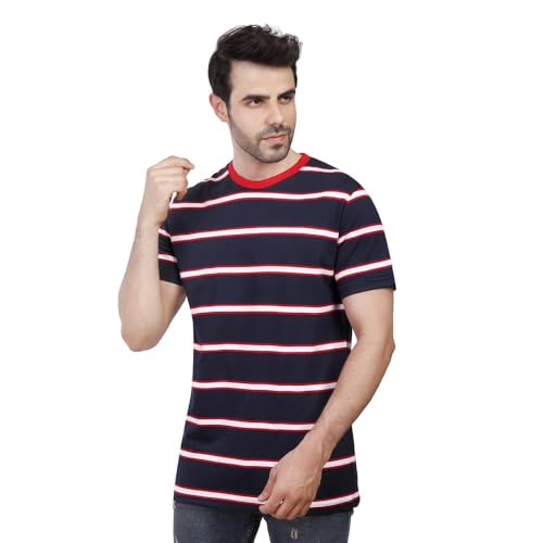 COUP - تيشيرت مقلم برقبة دائرية وأكمام قصيرة للرجال من كوب، مقاس 2XL، لون كحلي، موديل 1000754