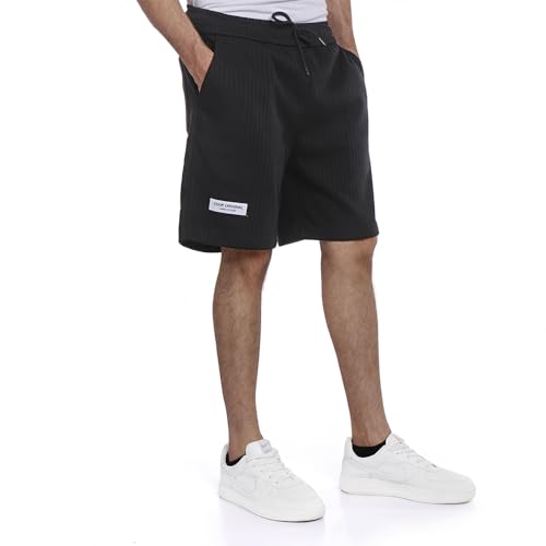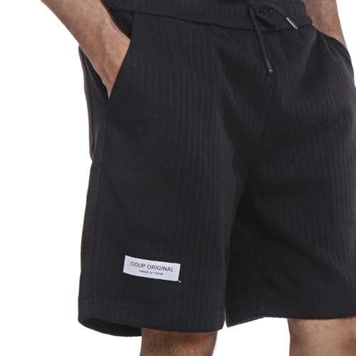 COUP - شورت بخصر متوسط الارتفاع وجيوب ورباط إغلاق للرجال من كوب، مقاس M، لون أسود، موديل 1500115