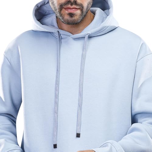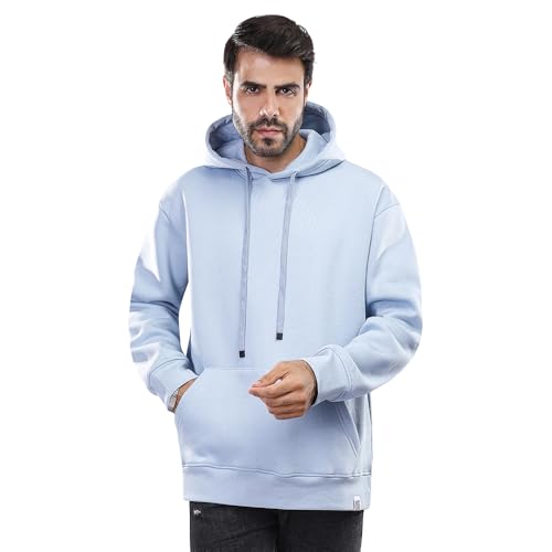 COUP - سويت شيرت سادة بغطاء للرأس وأكمام طويلة وقصة فضفاضة للرجال 1600242 من كوب، ميديوم M، أزرق سماوي