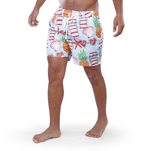 COUP - شورت سباحة تروبيك سادة من البوليستر المعاد تدويره للرجال من كوب، مقاس M، لون أزرق سماوي،2315900601911