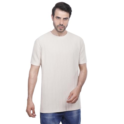 COUP - تيشرت سادة برقبة دائرية وأكمام قصيرة من كوب، بلون بيج، مقاس 3XL