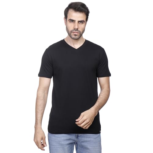 COUP - تيشرت سادة برقبة شكل V وأكمام قصيرة من كوب، لون أسود، مقاس M