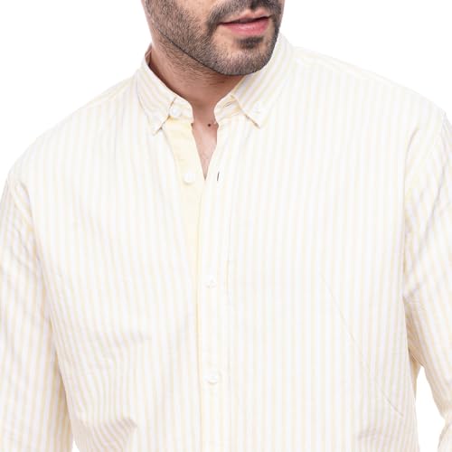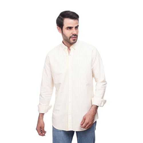 COUP - قميص أوكسفورد مخطط بأكمام طويلة من كوب، أصفر، مقاس واحد