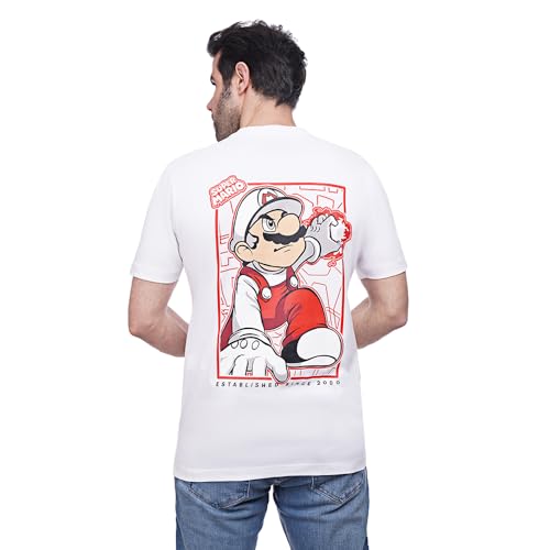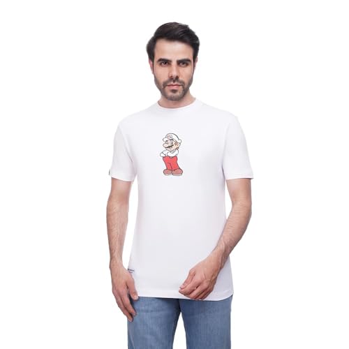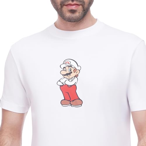 COUP - تيشرت بقصة فضفاضة وطباعة سوبر ماريو من كوب، أبيض، اكس لارج XL