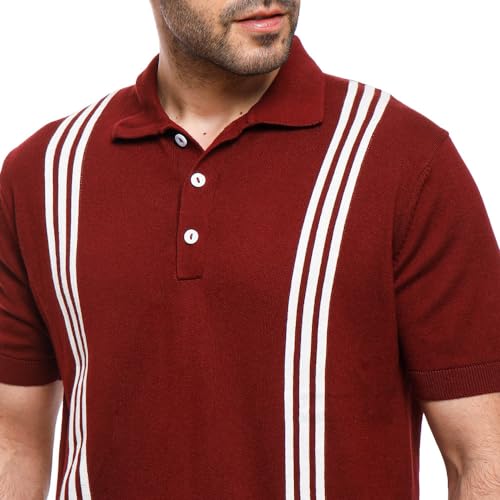 COUP - تيشرت بولو من نسيج محبوك بأكمام قصيرة من كوب، بورجندي، XL
