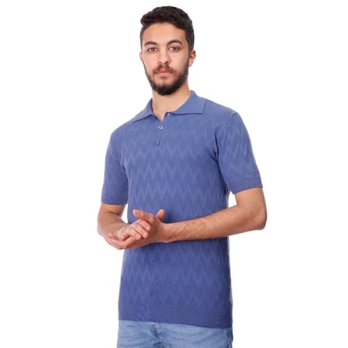 COUP - تيشرت بولو من نسيج محبوك بكم قصير من كوب، نيلي، اكس اكس لارج 2XL