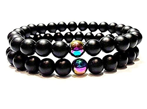 iN-Bracelet - اساور للجنسين من حجر الاونكس مزينة بحجر الهيماتيت الملون