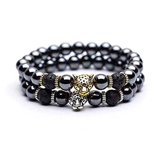 Other - سوار للازواج مع راس نمر وحجر الهيميتيت هدية لمحبي المسافات, حجر, الهيماتايت، للجنسين