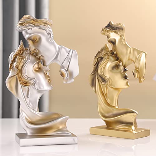 NORHOR - تمثال قبلة ابداعية للزوجين، تمثال فني تجريدي للزوجين، تمثال ديكور منزلي من الراتنج، تمثال رومانسي يستخدم لتزيين المنزل وحفلات الزفاف والهدايا. (فضي)، من نورهور