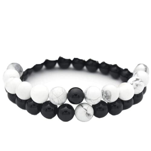 generic - سوار كلاسيكي للازواج من حجر اللافا الصخري البركاني الطبيعي باللونين الابيض والاسود للرجال والنساء