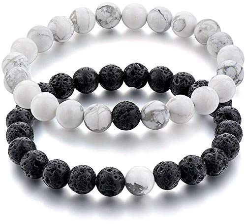 generic - اساور مسافات الازواج من ذا موب ماركت من حجر اللافا البركاني والخرز الابيض للجنسين للرجال والنساء