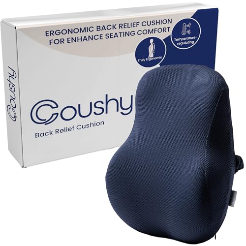 Coushy - كوشي | وسادة مريحة لتخفيف الظهر | ملحقات المكتب: وسائد كرسي، وسادة مقعد السيارة، وسادة كرسي مكتب لدعم الظهر وسادة دعم اسفل الظهر لالام الظهر (ازرق) 2 باوند