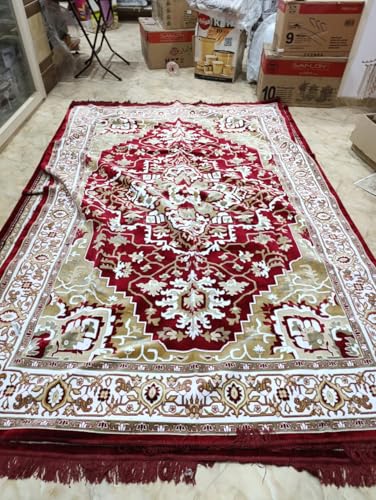 Generic - سجادة مستطيلة من العجمي باللون الأحمر، مصممة كسجادة أرضية بتصميم جديد ومبتكر. متوفرة بمقاس 3 × 2 متر