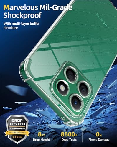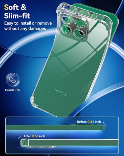 - 【عبوة من 3 قطع】: تتضمن العبوة المطورة 1 × جراب موبايل شفاف، 1 × واقي شاشة من الزجاج المقوى، جراب سيليكون شفاف لموبايل هونر X8b.