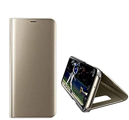 Generic - جراب من بلاستيك فليب كلير فيو مع استاند بدون سينسور و ليس ذكى لهاتف سامسونج جالاكسى ايه 20 - ايه 30 ذهبى