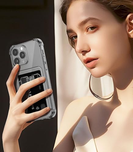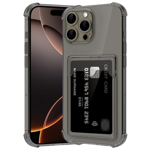 ÁRBOLORO - جراب لموبايل ايفون 16 برو ماكس مع حامل بطاقات، جراب محفظة مع فتحة للبطاقات الشفافة، جراب سيليكون بولي يوريثين حراري رفيع للغاية ناعم مضاد للخدش ومضاد للصدمات لموبايل ايفون 16 برو ماكس، اسود