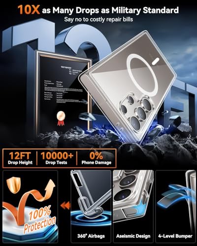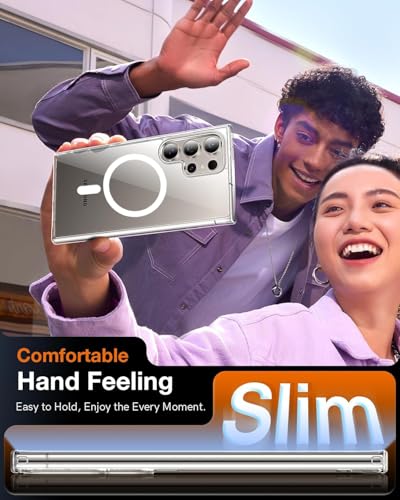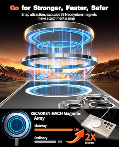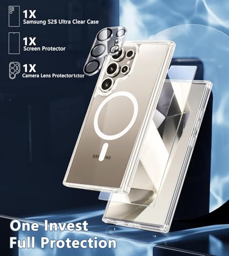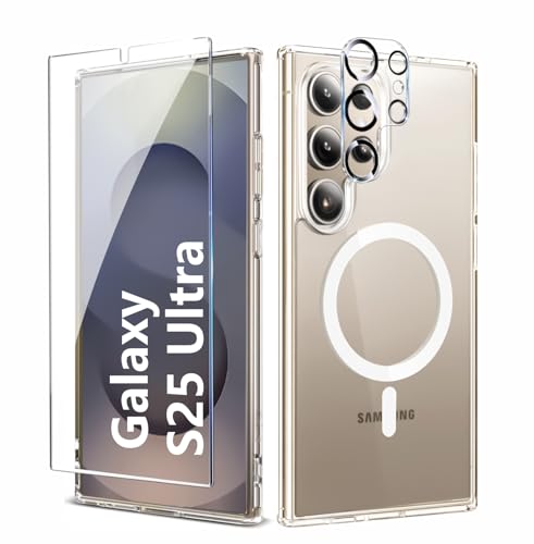 KECAOREN - جراب سامسونج جالاكسي S25 الترا، متوافق مع ماج سيف، جراب مغناطيسي شفاف نحيف لموبايل جالاكسي S25 الترا مع طبقة زجاجية + طبقة حماية للكاميرا، جراب سيليكون مضاد للاصفرار ومضاد للصدمات