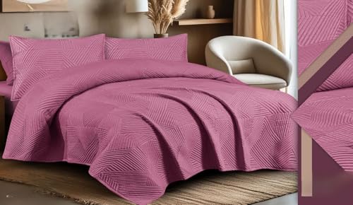 Generic - طقم كوفرتة 3 قطع، وردي، 240×260 سم، يتضمن كوفرتة و2 غطاء خدادية 55×70 سم (وردى)