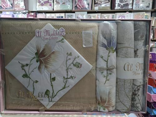Generic - كوفرتة صوف + طقم ملاية سرير قطن تركي 4 قطع - لون بيج -25