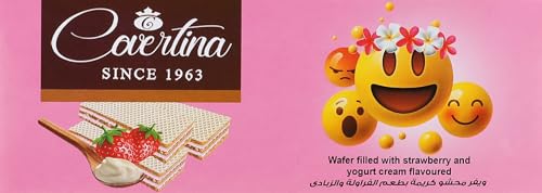 Covertina - بسكويت ويفر محشو بكريمة الفراولة والزبادي من كوفرتينا، عبوة 12 قطعة