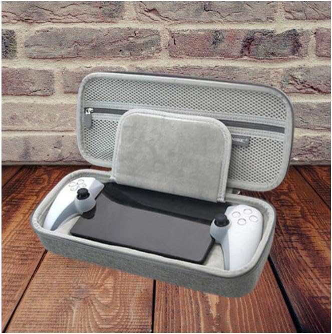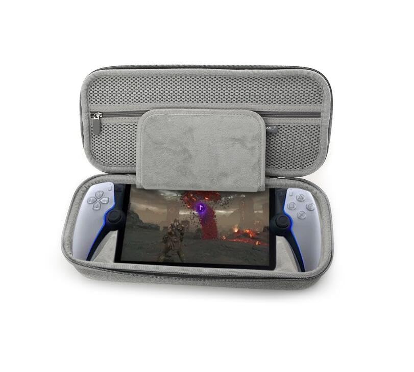 - - يتضمن جيبًا شبكيًا ليس فقط لتنظيم بوابة بلاي ستيشن نفسها وعصي التحكم، ولكن أيضًا الملحقات الكاملة مثل كابلات الشحن والبطاريات القابلة للإزالة. يوفر مساحة كبيرة ويمنع فقدان بطاقات الألعاب والأشياء الصغيرة الأخرى.