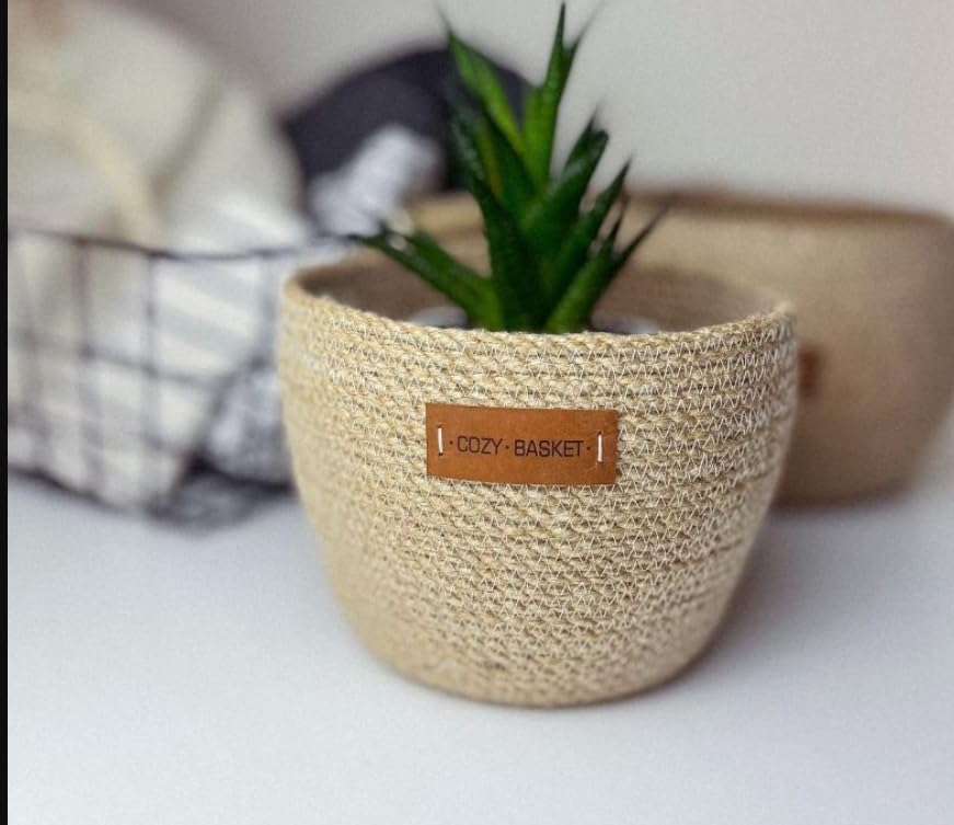 Generic - غطاء وعاء نباتات قطني منسوج على شكل سلة دافئة، لون بيج طبيعي، وعاء نباتات داخلي مزخرف، وعاء نباتات مصنوع يدويًا من الجوت، مقاس 20×25 سم، لون بيج من كوزي