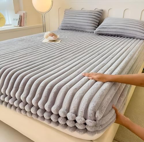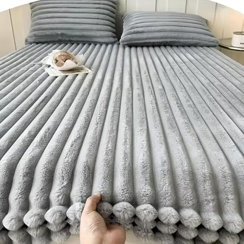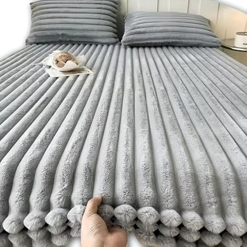 Generic - غطاء سرير شتوي فاخر من الفرو الصناعي بلون بني فاتح مع لمسة نهائية مضلعة، طقم وسادتين مزخرفتين، غطاء سرير شتوي 160 سم للراحة والأناقة (رمادي)