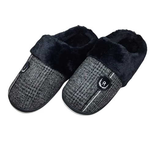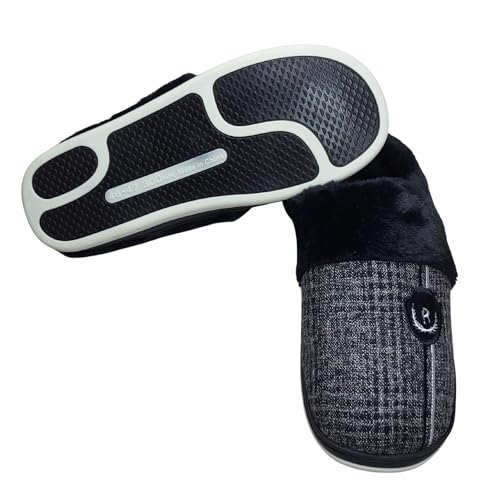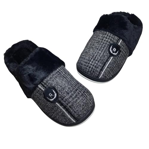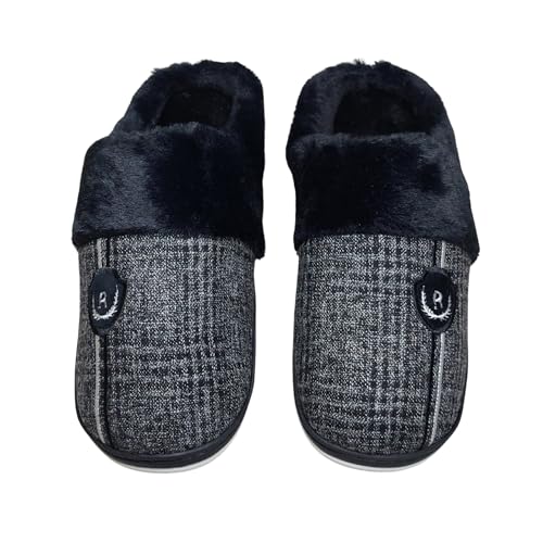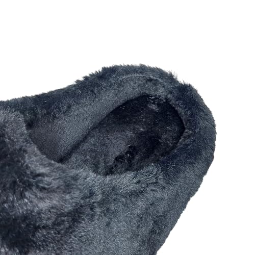 Generic - شبشب شتوي للرجال للأماكن الداخلية، مزود ببطانة فرو بلون أسود، حذاء منزلي سهل الارتداء من الإسفنج من كوزي هوم، مقاس 42/43 EU