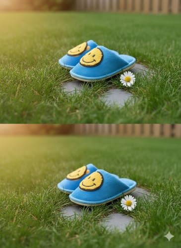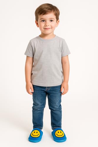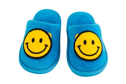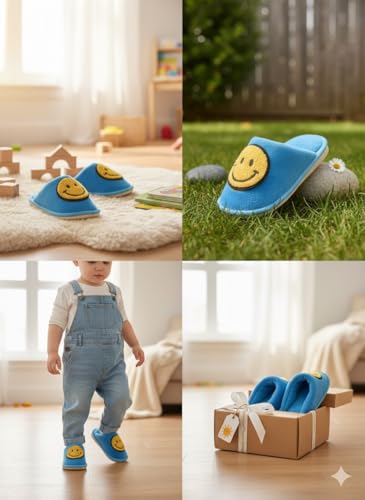 Generic - شبشب منزلي بتصميم وجه مبتسم للاطفال من كوزي، ازرق واصفر، مقاس 20-21، حذاء ناعم لغرفة النوم الداخلية مع نعل مانع للانزلاق
