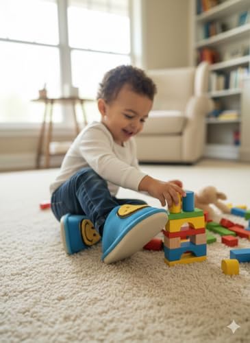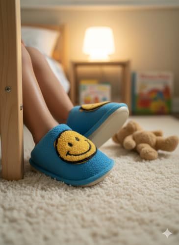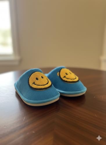 Generic - شبشب منزلي بتصميم وجه مبتسم للاطفال من كوزي، ازرق واصفر، مقاس 28-29، حذاء ناعم لغرفة النوم الداخلية مع نعل مانع للانزلاق