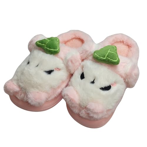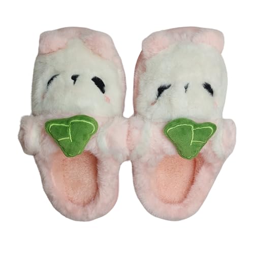 Generic - شبشب قطيفة بتصميم باندا هاوس للنساء من كوزي، فرو زهري وابيض مع ورقة شجر خضراء، حذاء شتوي داخلي، مقاس 38/39