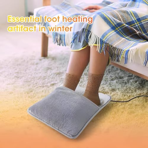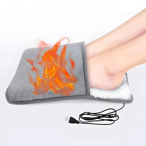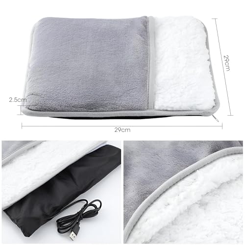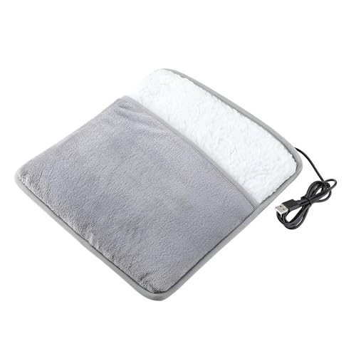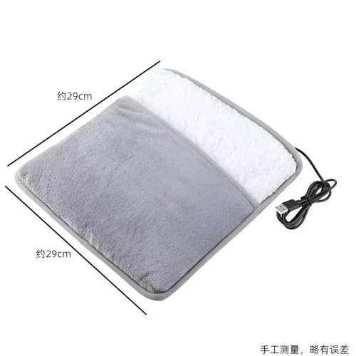 Generic - وسادة تدفئة القدم الكهربائية بمنفذ USB مع غطاء مخملي رمادي وابيض، 29 × 29 سم، لتخفيف الام القدمين والظهر والرقبة والبطن، مثالية للمنزل والمكتب والسفر والتعافي من كوزي ريليف