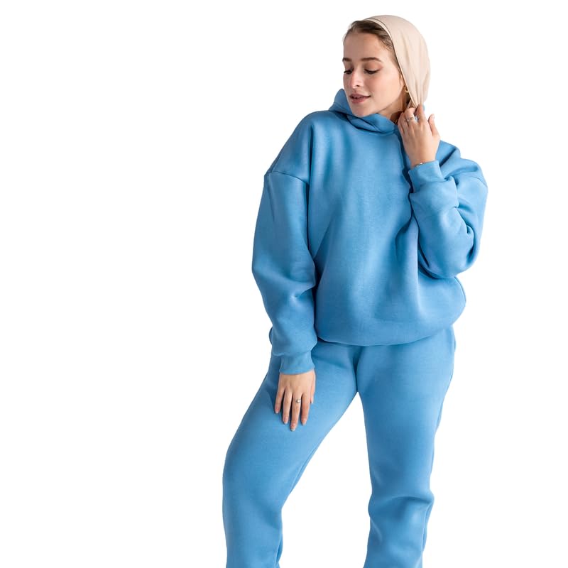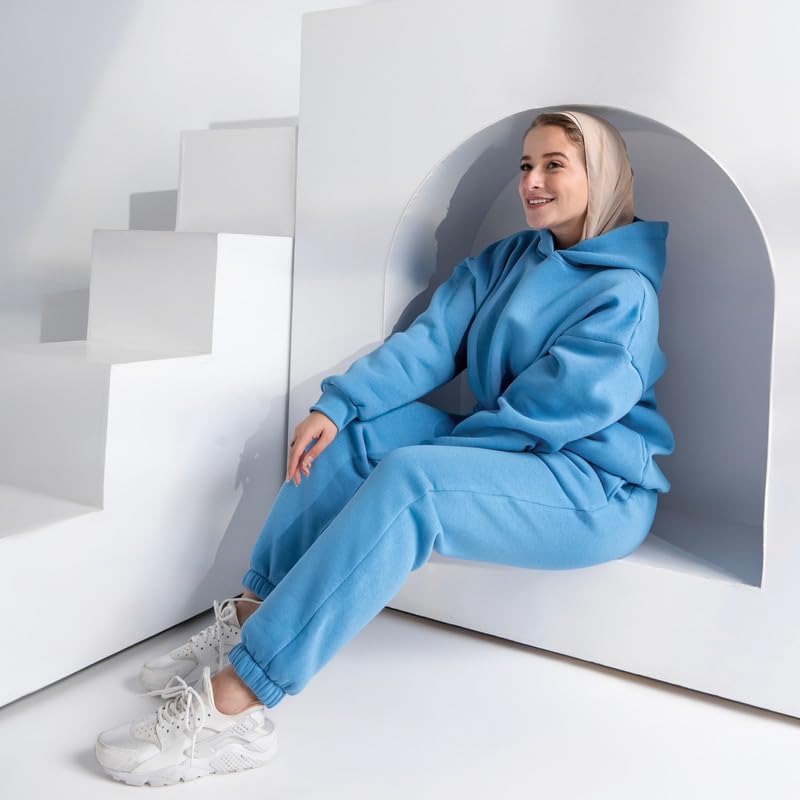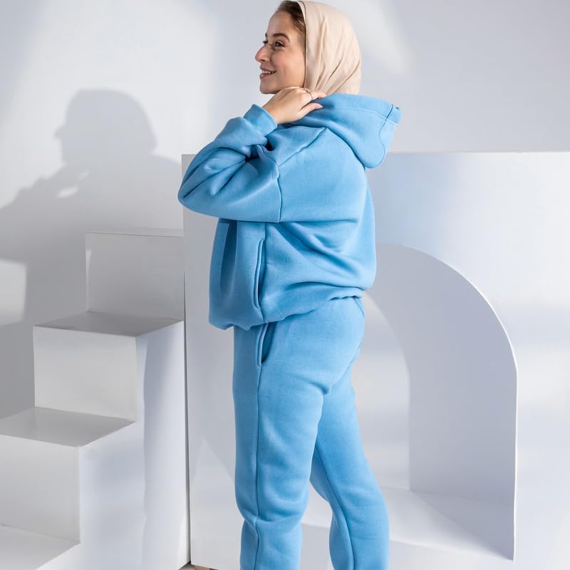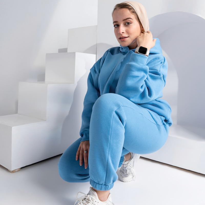 COZY UP IN STYLE - طقم سويت شيرت بغطاء للرأس مع بنطلون رياضي حريمي من كوزي اب ان ستايل، ملابس مريحة بمقاس كبير مكونة من سويت شيرت أنيق وبنطلون مريح لراحة يومية