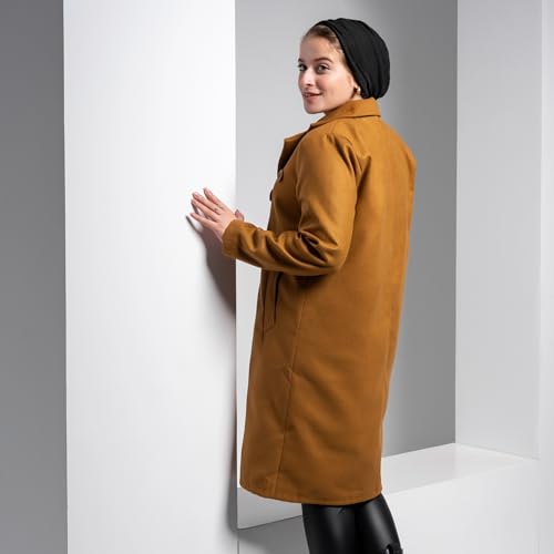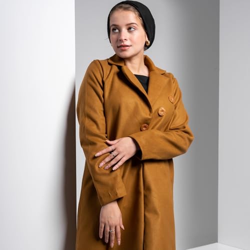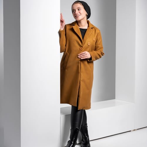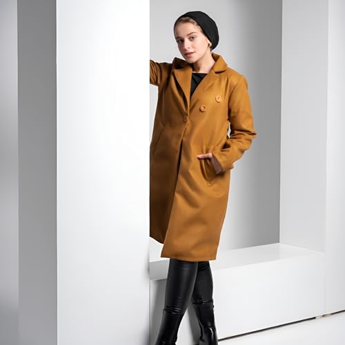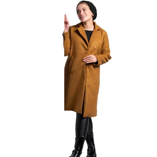 COZY UP IN STYLE - معطف للنساء من مزيج الصوف من كوزي اب ان ستايل - بالطو شتوي طويل كلاسيكي دافئ بأزرار بطول الجاكيت وجيوب أمامية كبيرة وياقة أنيقة، ملابس كاجوال ورسمية للطقس البارد
