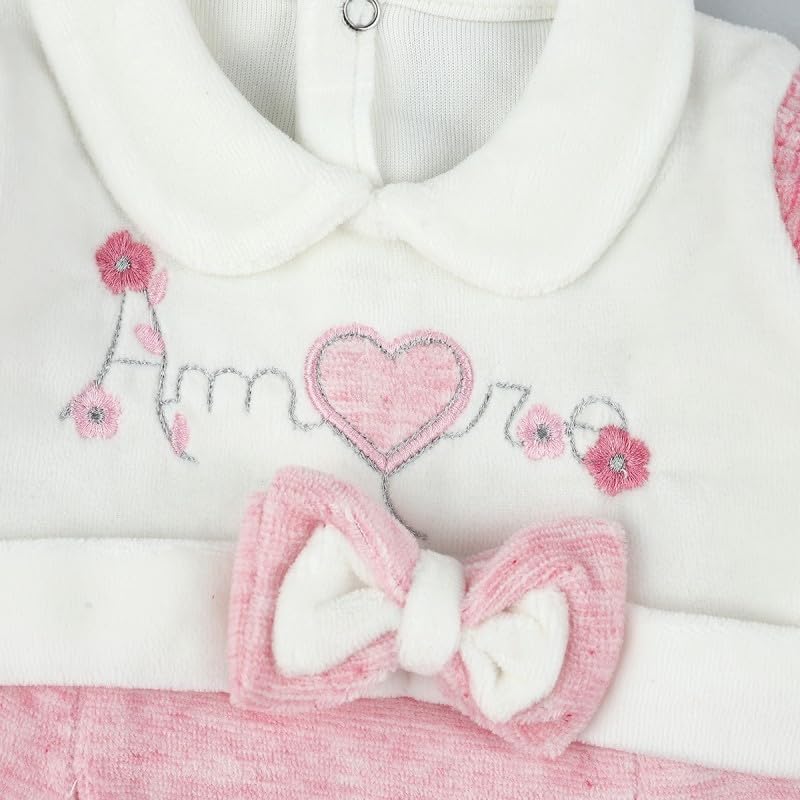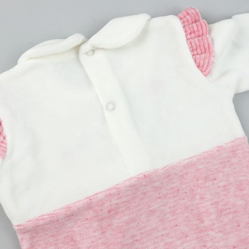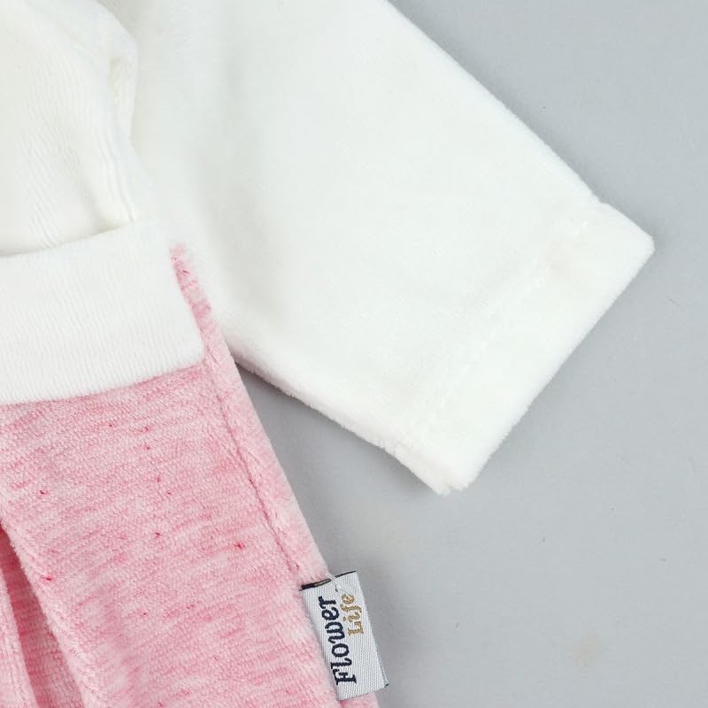 Generic - طقم قطيفة للبنات البيبي من كوزي بلون بينك وابيض | لعمر 6-9 اشهر | فلاور لايف