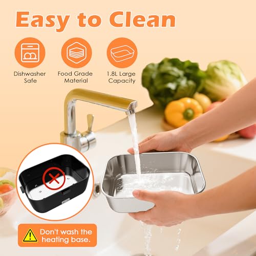 - سعة كبيرة 1.8 لتر: حاوية من الستانلس ستيل قابلة للفصل سعة 1.8 لتر + حاوية بلاستيكية من البولي بروبيلين مانعة للتسرب سعة 0.45 لتر للوجبات الخفيفة والصلصات. جهاز تسخين الطعام المحمول مجهز أيضًا بشوكة وملعقة من الستانلس ستيل لسهولة الاستخدام. الحاويات والشوكة والملعقة في صندوق الغداء لتسخين الطعام قابلة للغسل في غسالة الأطباق، مما يجعلها سهلة التنظيف وتوفر لك الوقت في التنظيف. ملاحظة: لا يمكن تسخين الحاوية سعة 0.45 لتر